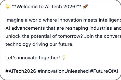 AI understands your campaign themes and automatically applies relevant hashtags and messaging for consistent brand voice.