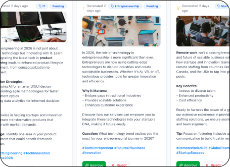 Generate content based on your chosen business categories and industries. AI understands your niche and creates relevant, engaging posts.