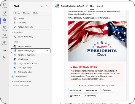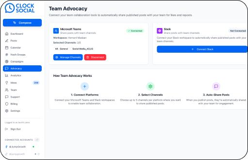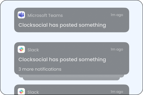 Exclusive feature that automatically notifies your team in Slack and Teams when posts go live for instant engagement amplification.