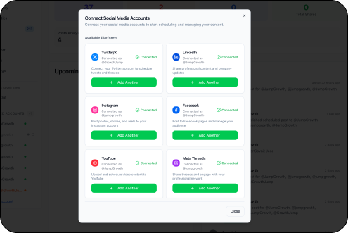 Track performance across all platforms with detailed insights, engagement metrics, and growth analytics.